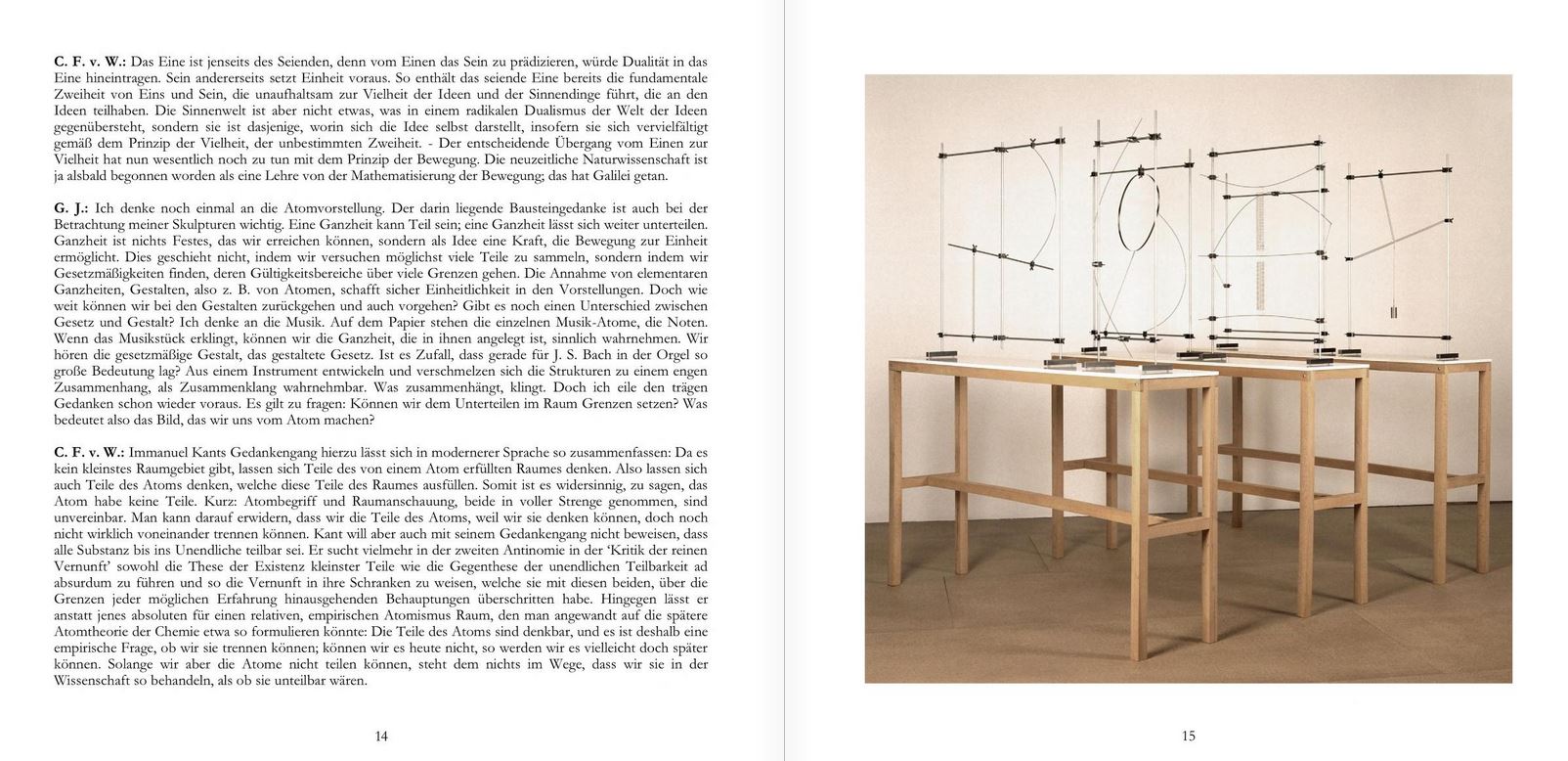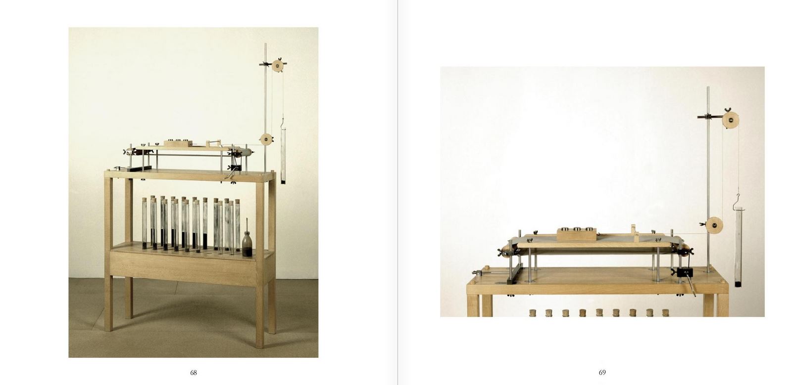 Die Besinnung auf das naturwissenschaftliche Temperament wies den Weg zur ersten homogenen Skulpturengruppe. Aus einem selbst angelegten Baukasten entstanden variable Instrumente. Die Sprache der physikalischen Versuchsaufbauten lieferte dazu die Vorlage. Gleiche Elemente wie Stangen, Gelenke, Federn, Gewichte, fanden zu immer neuen Anordnungen.