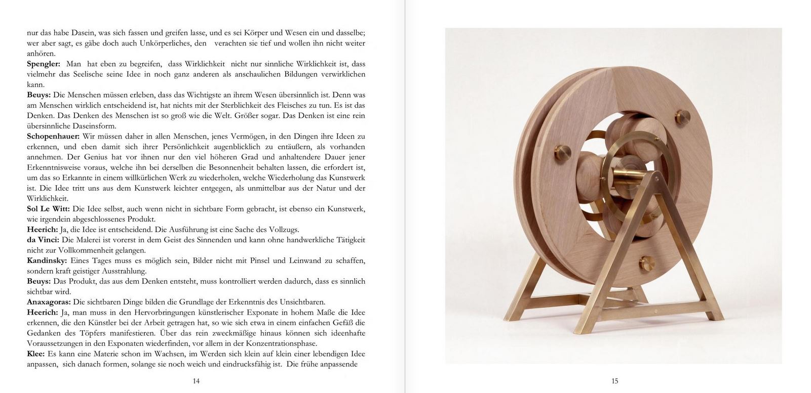Die in sich geschlossene Skulpturengruppe umfasst einfache und regelmäßige Anordnungen, der modellhafte Hintergrund jedoch war von handwerklicher Finesse, die Funktionalität trivial: die Drehung von wiederrum sich Drehendem um ein Zentrum.