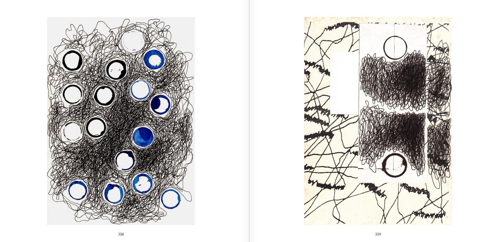 Im Graphischen erstreckten sich weitläufige Tuschezeichnungen über viele Variationsetappen, so dass das Element Linie mehr und mehr Bedeutung erlangte. Auf dem Feld der Collage fanden ebenso linear angelegte "Untersuchungen" statt, indem gleichartige Papiere erst in kleine Quadrate zerschnitten und sodann wieder in zufälliger Reihenfolge zusammengesetzt wurden. Eine äußerst systematische Strategie und umfangreiche räumlich-zeitliche Ausdehnung prägte alle diese Arbeiten.